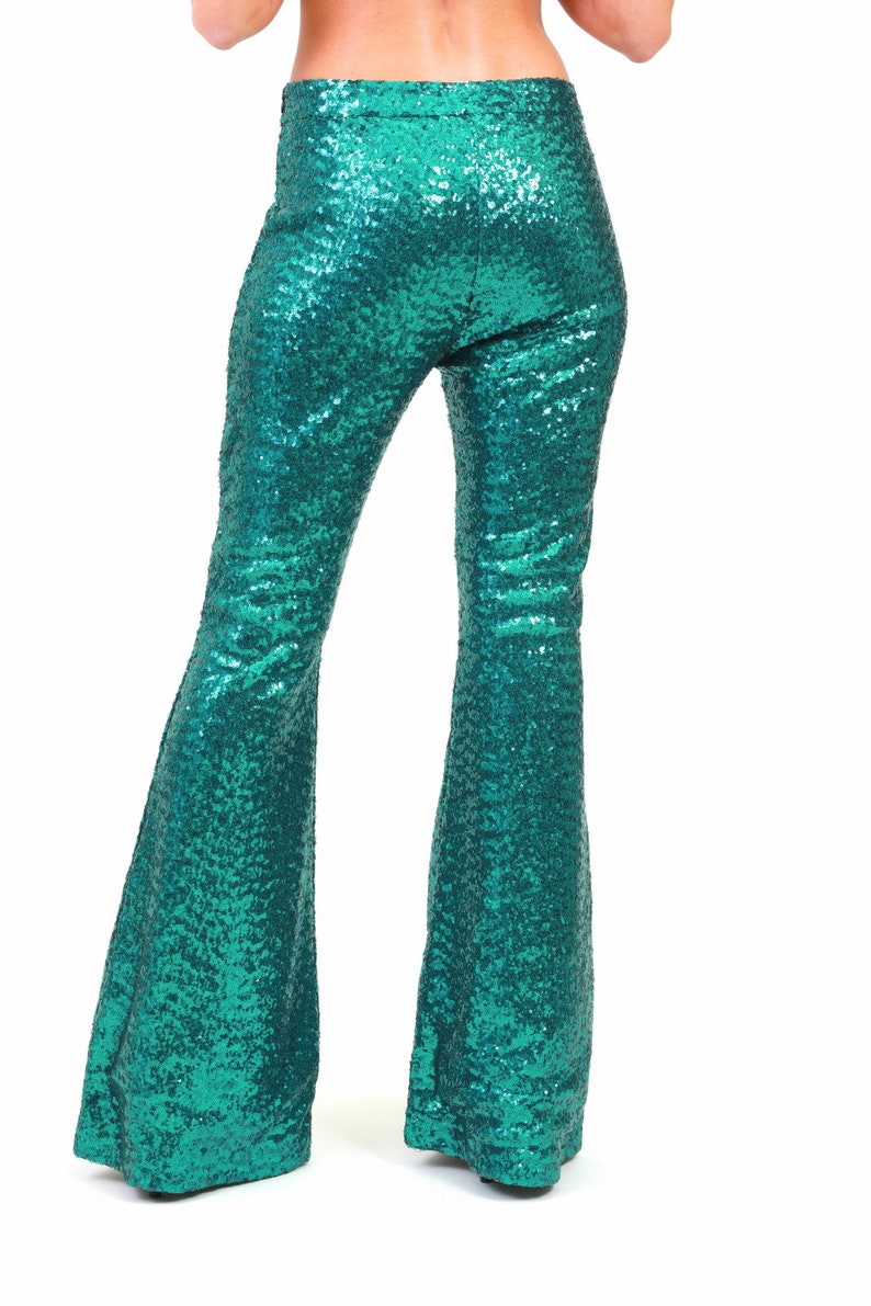 Green Sequin Flare Pants, Bell Bottoms, Harem Pants, Yoga Pants, Wide Leg Pants, Boho Hippie Women Pants