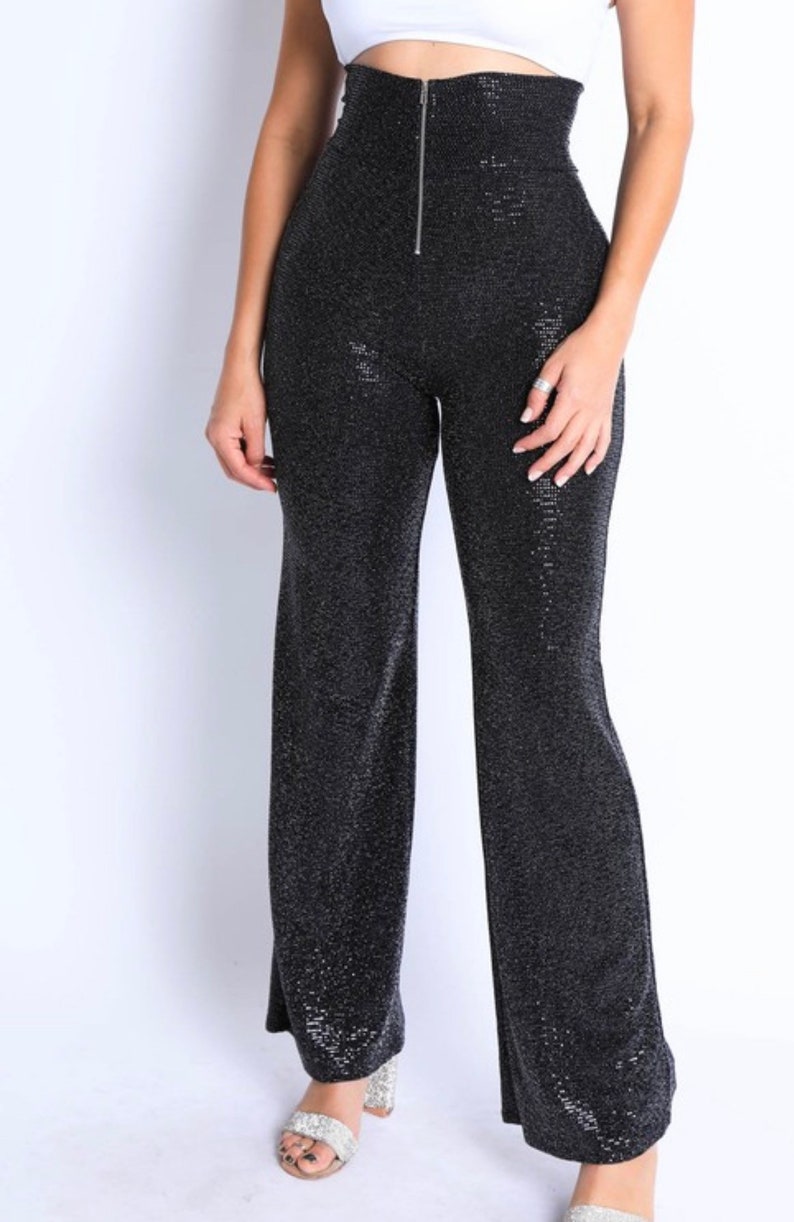 Women's Sequin Pants, High Waisted Sparkly Bell Bottoms, Wide Flare Leg Pant, Unique Clothes